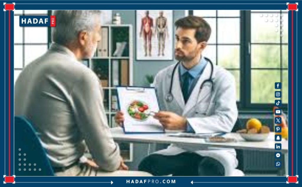 العملوضع خطة غذائية تساعد في إدارة المرض وتحسين الصحة بشكل عام.يشخص المرض، ويوجه المريض إلى أخصائي التغذية لوضع خطة غذائية مناسبة.
